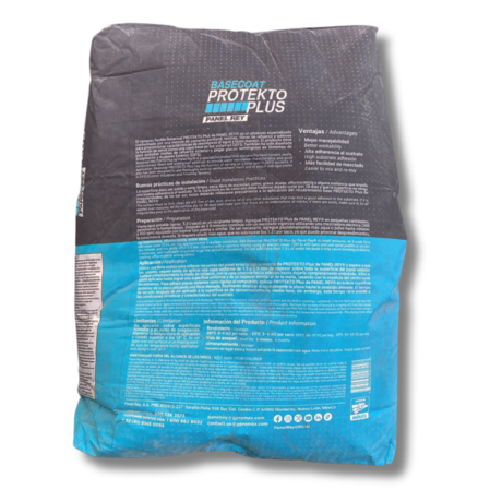 El Cemento Flexible Base Coat Protekto Plus de Panel Rey® es una solución especializada para aplicaciones en exteriores, diseñada para proporcionar un acabado fino y mayor resistencia en sistemas de aislamiento y acabado exterior (EIFS). Formulado con cemento Pórtland, resinas poliméricas, material hidrófugo, y fibras de refuerzo, este cemento destaca por su capacidad para crear capas base duraderas y de alta adherencia en paneles de yeso exteriores o base cemento.